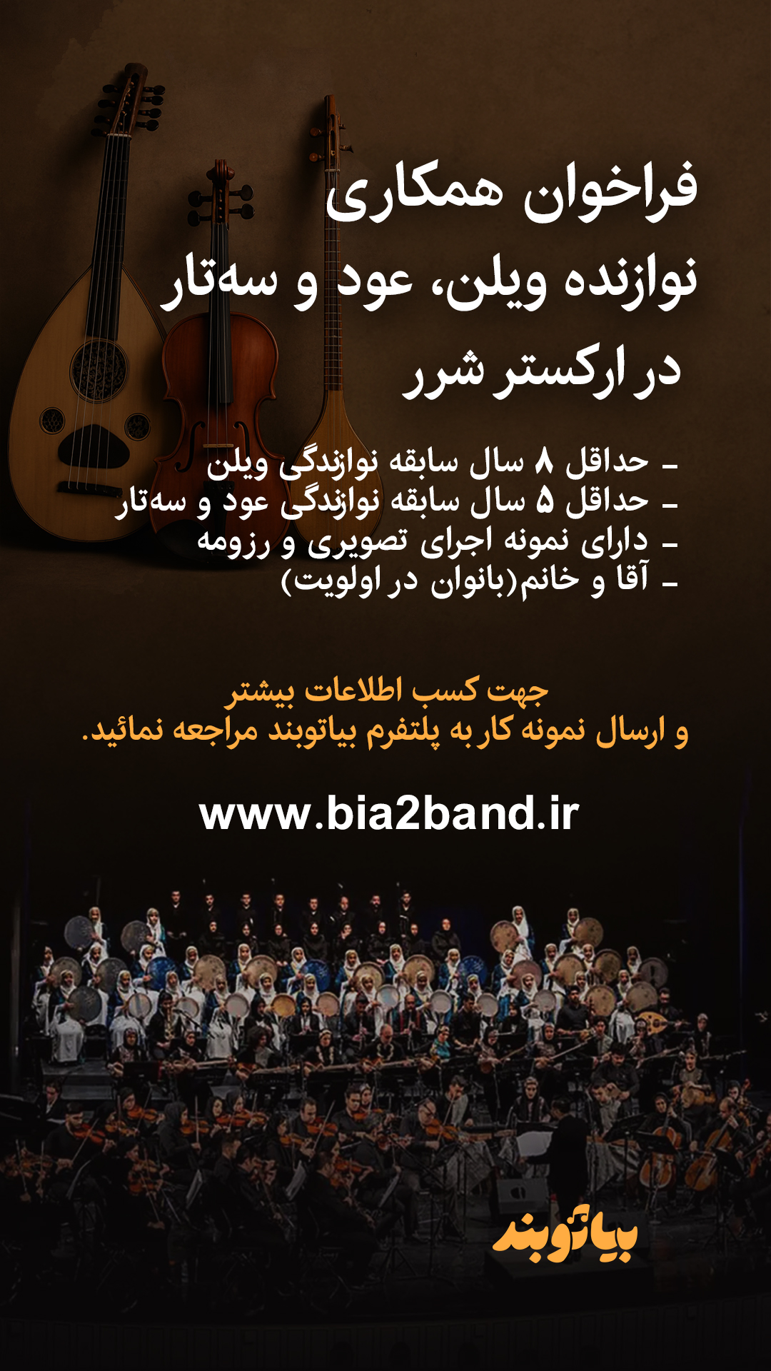 جذب نوازنده ویلن، عود، سهتار🎶 فراخوان همکاری با ارکستر شرر ارکستر شرر در راستای تکمیل کادر هنری خود، از…artschoolبیشتر بخوانید